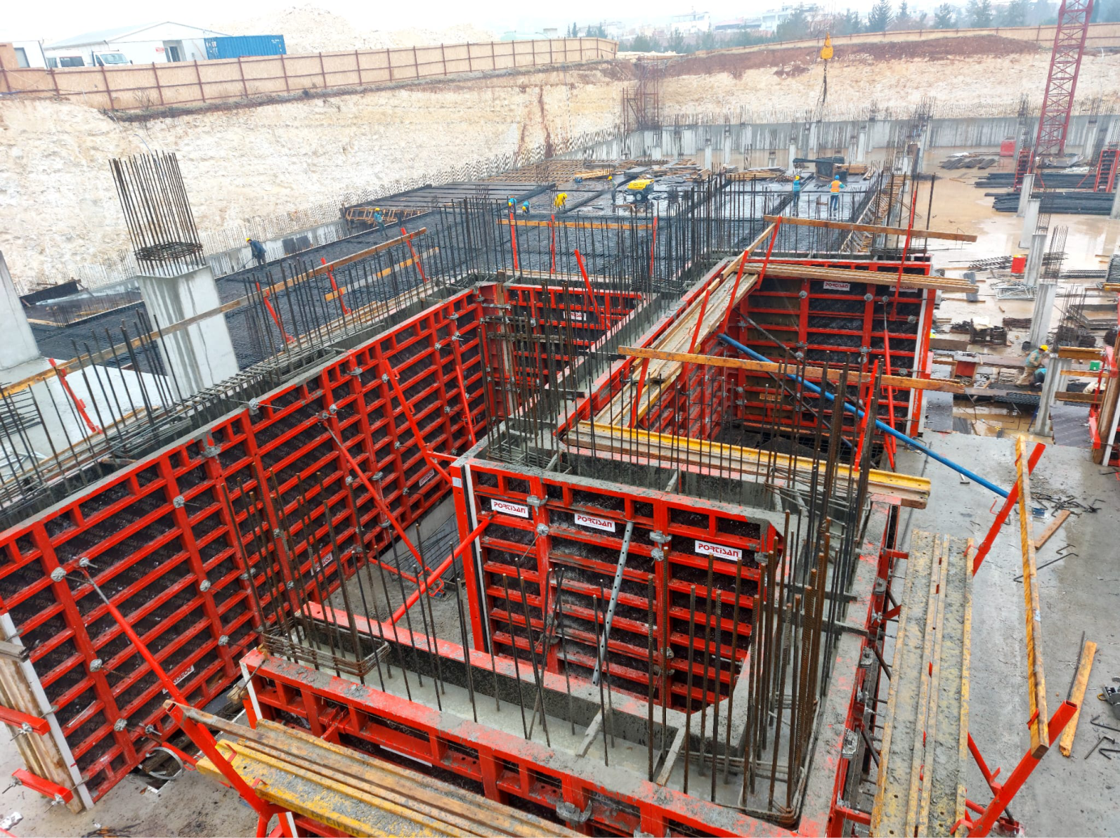 Les coffrages de voiles de différentes tailles peuvent être installés avec les mêmes éléments.